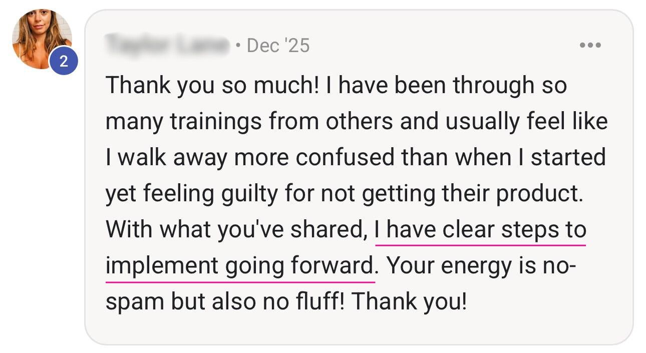 ✅ New clients sign up every week without live launching, posting on social or calls.